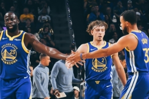 击退灰熊!勇士官方晒赢球海报:库里、追梦和波杰姆斯基登上封面