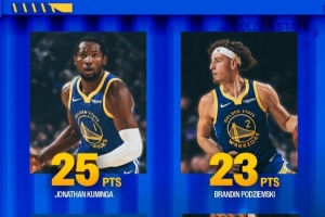 四面开花!勇士晒库明加&波杰&巴特勒&穆迪四人同场20+得分海报!