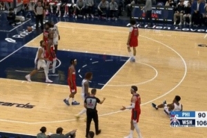 哈登造波斯特三分犯规 勇士果断选择挑战并成功 改为中圈争球