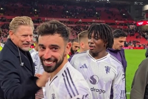 舒梅切尔赛后与拉门斯拥抱,祝贺曼联球员双红会取胜