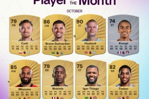英超10月最佳8人候选名单:哈兰德、姆伯莫领衔,廷伯在列