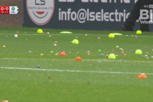体育资讯10月20日讯 《太阳报》报道,凯尔特人球迷对其俱乐部董事会的抗议行动在本周客场对阵邓迪FC的比赛中再次升级,并导致比赛在开球后不久便中断了三分钟。愤怒的凯尔特人球迷向场内投掷了大量网球、小型弹力球甚至橘子,一度铺满了本方进攻方向的禁区。