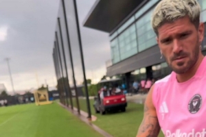 迈阿密国际更新社媒动态,晒出整蛊球员的视频,德保罗被突然出现的玩偶蜘蛛吓了一跳。