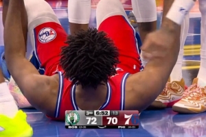 过分了嗷!小白冲抢恩比德犯规 恩比德直接作出投篮姿势&夸张摔倒