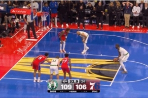 真给机会呀!凯尔特人32.9秒领先2分 杰伦-布朗第二罚弹框而出