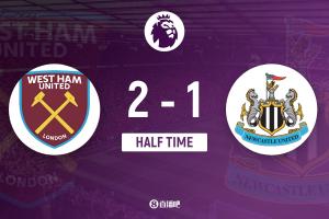半场-帕奎塔世界波博特曼送乌龙墨菲破门 西汉姆联2-1纽卡斯尔联