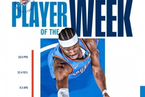 雷霆晒亚历山大周最佳海报 球队依旧不败 SGA场均28+4+6