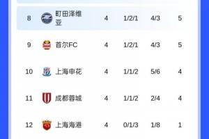 包揽倒数前三!亚冠积分榜:海港4轮1分垫底,蓉城申花倒数二三
