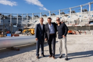 迈阿密国际足球俱乐部的新主场迈阿密自由公园,将在未来两周内完成另一个重要的建设里程碑。球场顶棚的最后一根梁正在被俱乐部的三位老板豪尔赫-马斯、何塞-马斯和大卫-贝克汉姆签名后吊装到位。这些签名位于公司理念“梦想自由”之下,由管理合伙人兼迈阿密本地人豪尔赫-马斯亲自刻在梁上,象征着推动迈阿密国际足球俱乐部和迈阿密自由公园不断迈向新高度的灵感。
