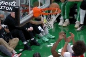 谁碰进的这是?布朗篮下被帽与对手争篮板球直接进筐