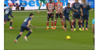 有点威胁!赖斯主罚禁区前任意球选择直接打门,被桑德兰门将扑出
