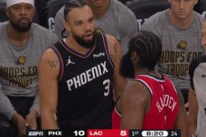 很不满!布克防守被撞倒遭无视 抱怨判罚被吹技术犯规
