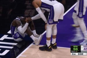 哥我身体没你那么好!施罗德刚崴脚 威少握着手不放想拉起他