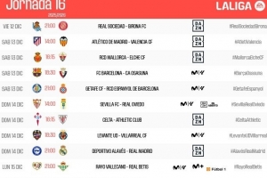 西甲第16轮时间:巴萨12月14日01:30对阵奥萨苏纳,皇马15日出战