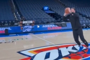 这不是P的!东契奇踩着中场Logo 超远三分三连中还都是空心