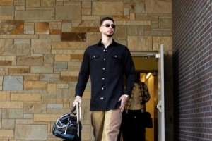 新赛季首日穿搭!申京黑衬衫+拼色工装裤这造型打几分?