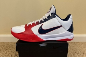 又一双Kobe 5大学PE!康涅狄格大学专属配色 鞋舌带有哈士奇Logo