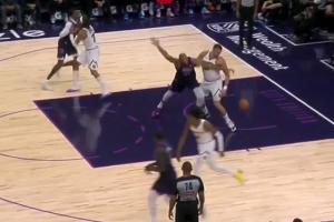 滑稽!戈贝尔自信背打约基奇 撞了一下直接丢球了