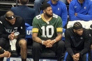 已经连续9场缺席!浓眉坐在板凳席 身穿NFL绿湾包装工球衣观战