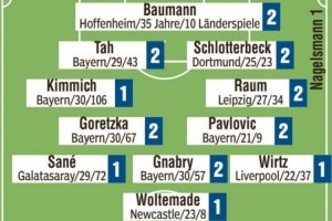 德国队图片报评分:基米希、萨内、维尔茨、沃尔特马德最高