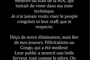 埃里克·谢尔在社交媒体上澄清自己的行为:“足球是一项充满情感的运动,赛后我之所以情绪激动,是因为民主刚果的一名工作人员进入我的技术区域,我与他发生了冲突。 我从未想过针对民主刚果人民或工作人员,我对他们充满尊重。