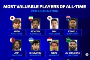 以下为亚足联各队历史身价最高球员具体身价情况: