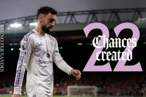 大腿!曼联官方晒B费数据海报,本赛季创造22次机会英超最多