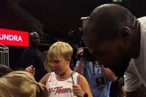 提前的祝福!杜兰特赛前为几名小球迷签名:祝你们感恩节快乐