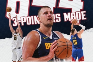 约基奇三分命中数来到844记 超越小波特 升至队史三分榜第二