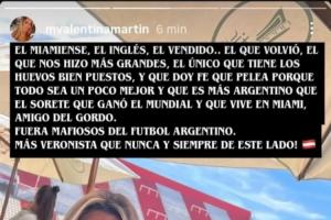 “那个迈阿密人(暗指梅西)、那个英国佬、那个叛徒……而他(贝隆),是那个回来了的人,是那个让我们变得更伟大的人,是唯一一个真有种、敢站出来战斗的人!”