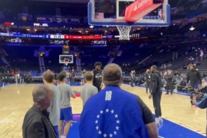 目前状态出战成疑!恩比德赛前热身 一顿训练罚球未见跑跳