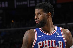 真不容易!乔治突破欧洲步压哨上篮 76人终止末节4分多钟得分荒