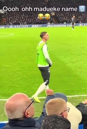 切尔西球迷嘘马杜埃凯,场边的帕尔默点头“起哄”