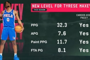 马克西本赛季场均轰32.3分7.6助场均罚球8.1次 均创生涯新高!