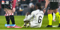 一场伤两个!卡马文加被踢倒受伤无法坚持,居莱尔替补出场
