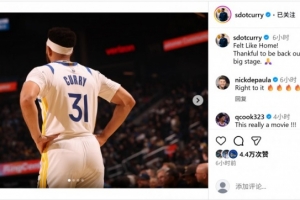 斯蒂芬转发!赛斯·库里晒勇士首秀照:感觉像回家了一样
