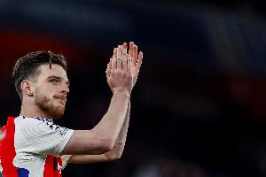 枪迷松口气?赖斯赛后向天空体育表示自己没事,能出战维拉
