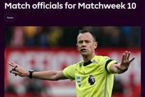 英超第10轮裁判安排:
