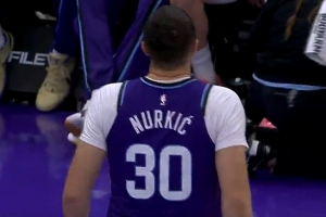 GIF-利弗斯空切试图隔扣努尔基奇被犯规,努尔基奇有些不舒服