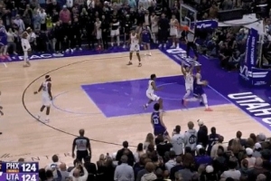 真加时了!马尔卡宁底角接球 高难度翻身中投不中 !